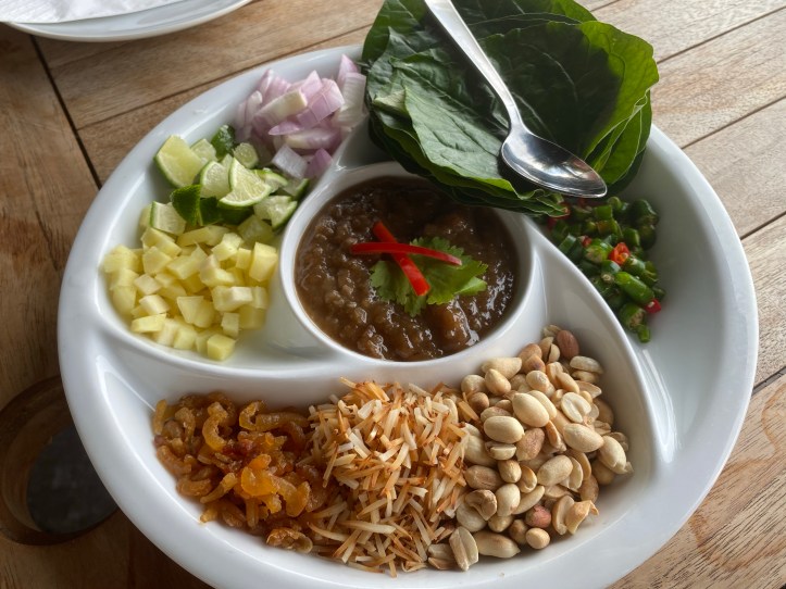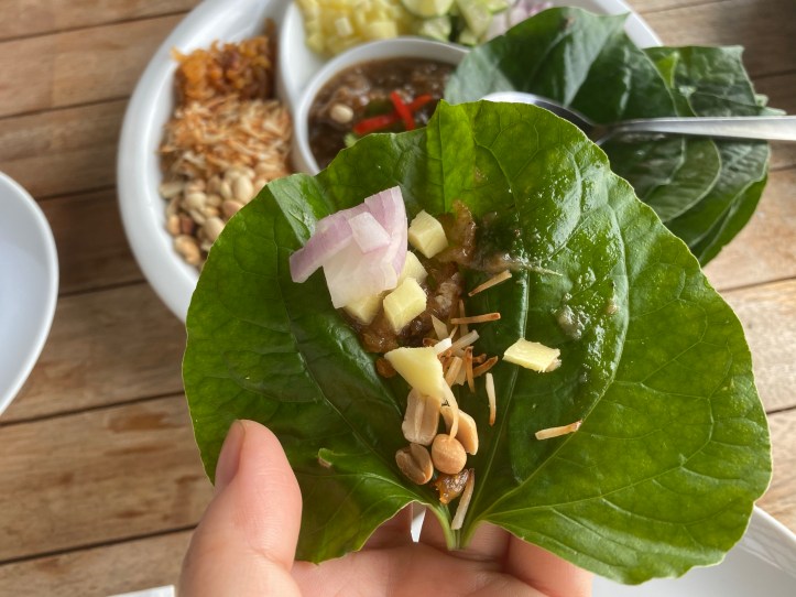 特に生姜や玉ねぎの刻みをこの葉っぱに包んでいただくこの前菜が大好きです〜。