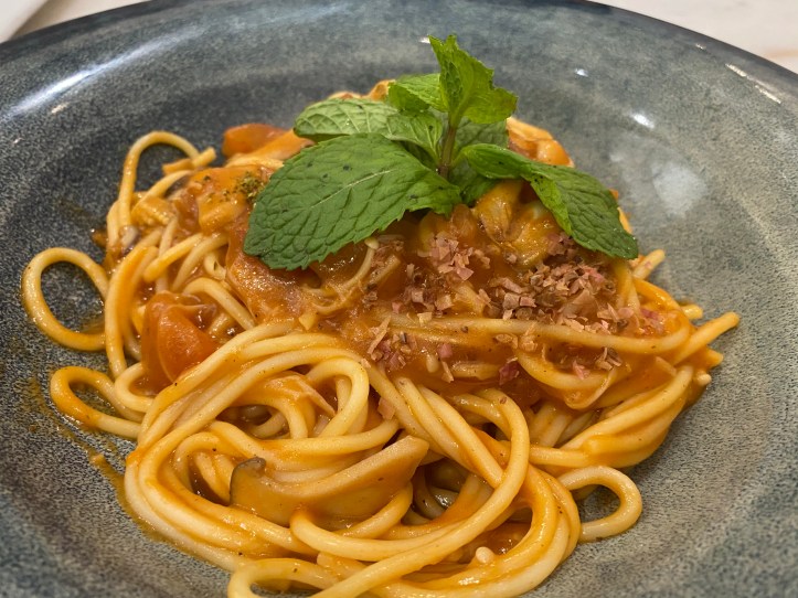 こちらはキノコとトマトのソースをベースにしたスパゲッティ。