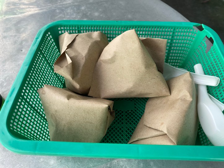 今は紙で包まれていることがほとんどですが、昔はバナナの皮が主流でした。