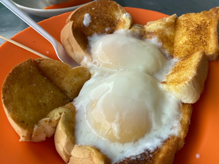 バターを薄く塗ったトーストと半熟卵です。