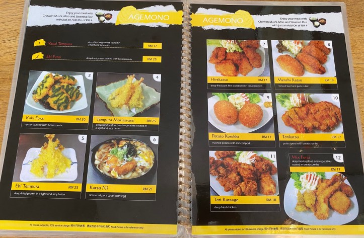 このおかず単品メニューにご飯と味噌汁&茶碗蒸しセットを追加料金のRM4-(約101円)で定食にすることもできます。