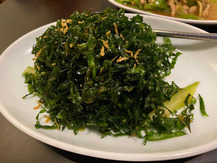 それとここのお気に入りはこのカイランという通称『チャイニーズブロッコリー』と呼ばれるお野菜の炒め物。