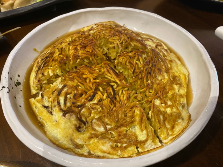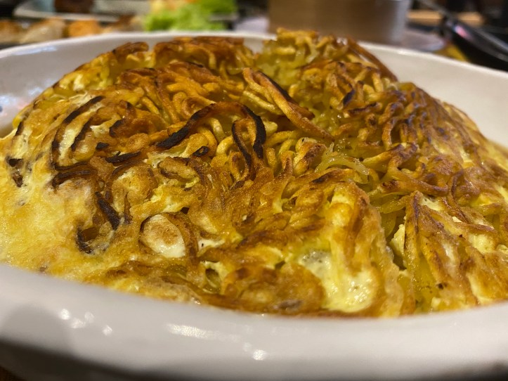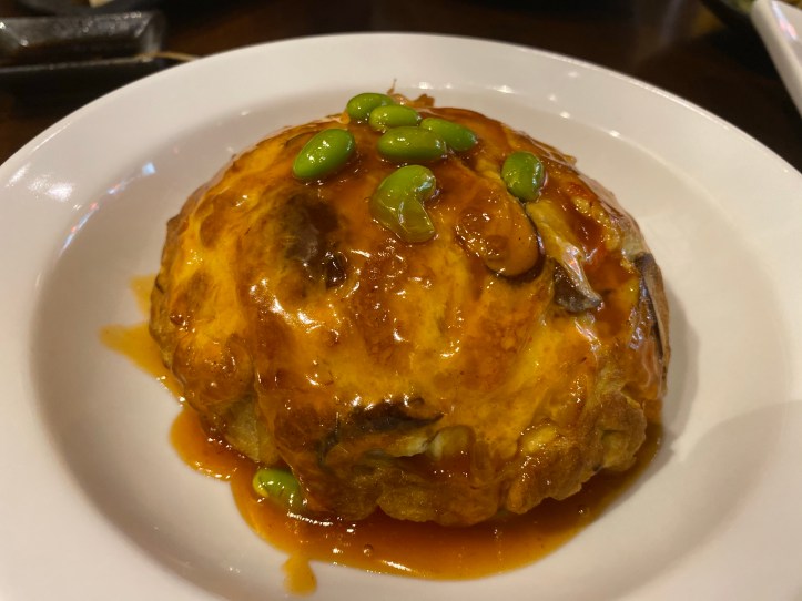 表面はカリカリに仕上げてあって、中から八宝菜のようなトロトロとした具が出てきます。