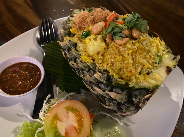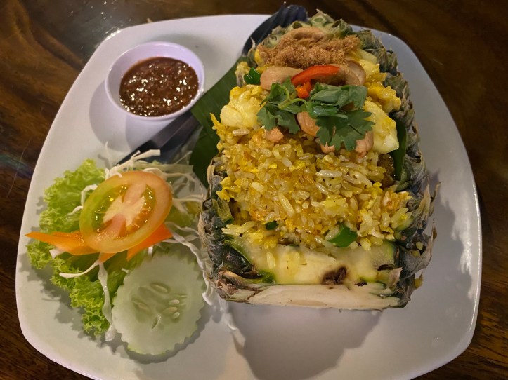 チャーハンは食べきれなかったので、パイナップルごとターパオ(持ち帰り)させていただいて、お家でもパイナップルチャーハンを作ってみたいと思います。