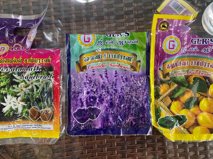 インド系の方たちがお祈りをする時に使う物だそうですが、これが良い匂いを放って蚊をどこかへ追い出してくれるのです。