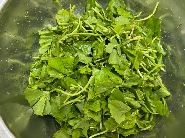 パガガはよ〜く洗って、1cmくらいにハサミで切ります。