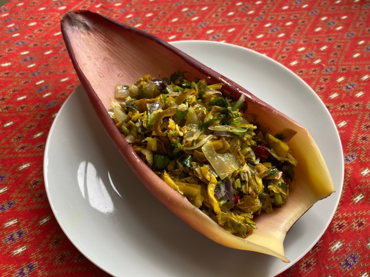 なかなかバナナのお花を日本では沖縄以外見かけることがないですが、東南アジアにお住いの方は材料も揃えやすいですのでぜひやってみてくださいね!