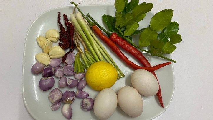 日本ではコブミカンの葉っぱと生の唐辛子とあひるの卵がなかなか難しいですよね。