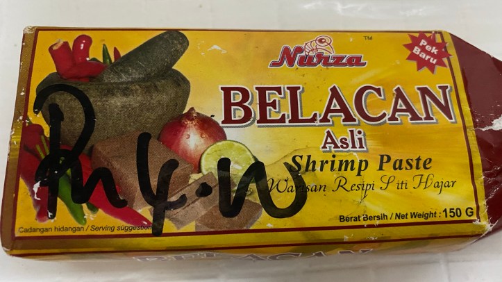 ブラチャンペーストというエビを発酵させたマレーシアの定番ダシであり日本食で例えると味噌のようなもの。