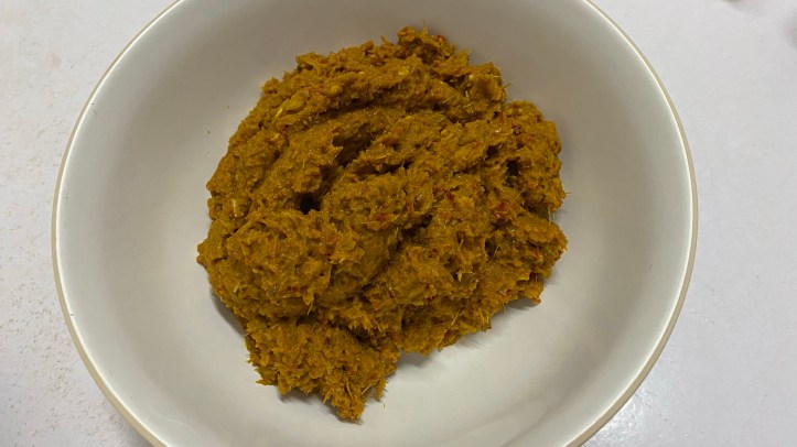 するとちょうど味噌くらいの柔らかさのペーストが完成です。