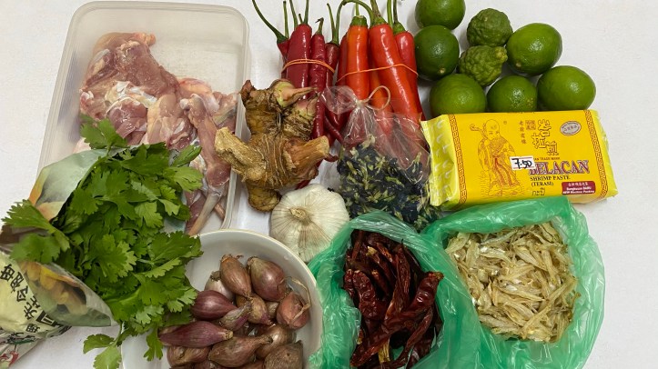 鶏肉、ブラチャンペースト、卵、きゅうり、そしてオクラ。